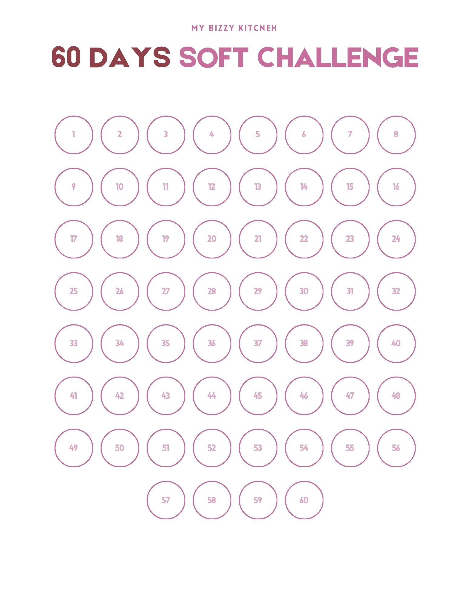 For a numbered 60 Day Soft Challenge Printable seen below, Facebook 60 day soft challege daily countdown