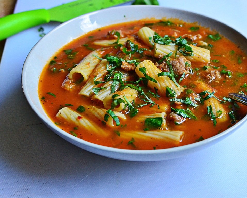 Before I headed out for my meeting in Chicago, I made lasagna soup.  Now you all know I’ve made this soup a bazillion times over the years, but I switched it up a bit and tried Gina’s recipe from Skinny Taste.  The only thing I did use two cups of my Cherry Tomato Basil Soup and I didn’t have lasagna noodles, so cooked up 2 ounces of rotini and added that to my soup.  This generous 2+ cup of soup is 9 smart points and totally filling.