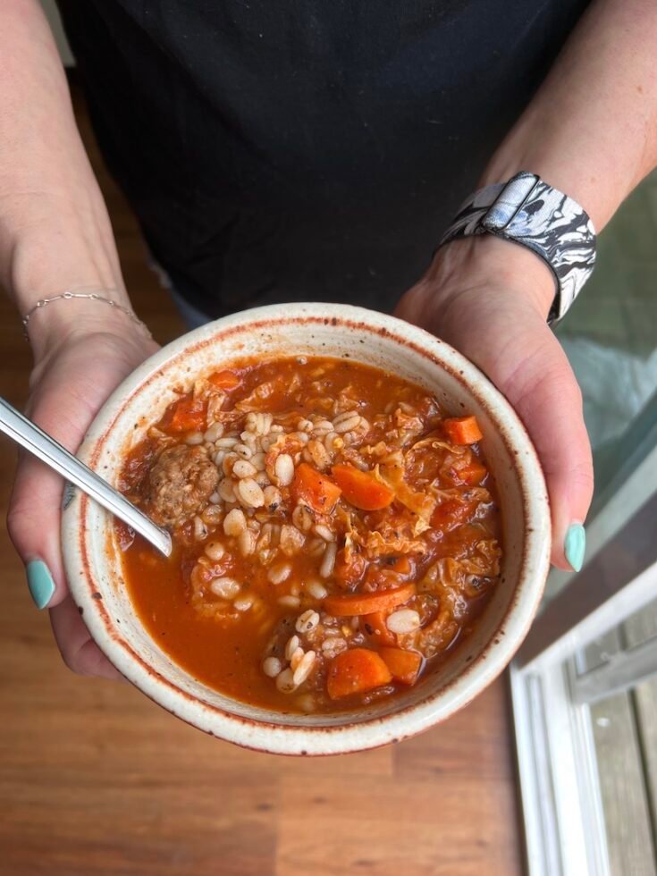 Hannah and I had some differences of opinion on this soup to start with, but I am in love with the final product. Barley is something I rarely use and it's delicious, and the meatballs add protein and pack a punch of flavor.