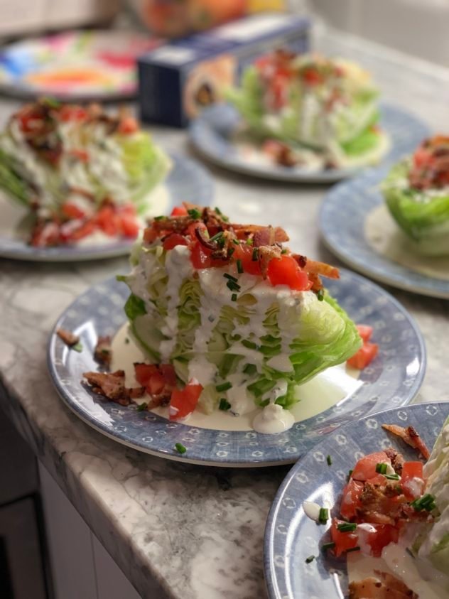 Mary Beth made the classic wedge salad – that was my late husbands favorite salad and if it was on a menu, he ordered it.  She made a light homemade blue cheese dressing that was amazing.