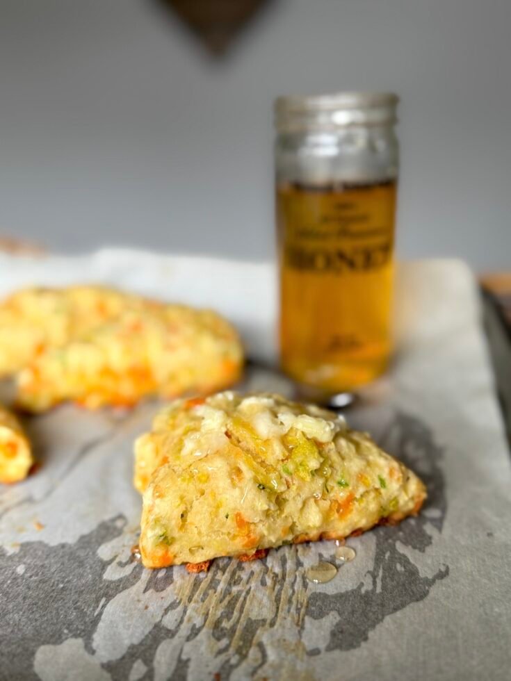 - Serve: Serve warm with butter and a drizzle of honey. Enjoy these light, buttery, and slightly spicy scones as a unique Thanksgiving side!