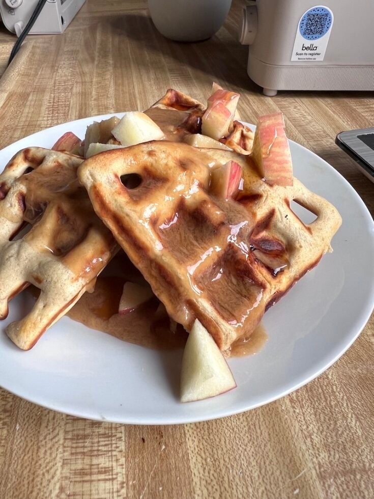 Growing up I don’t remember having waffles. But if my mom had this easy waffle recipe maybe that would have been a different story! Maybe a waffle maker was too expensive, or just another gadget that wouldn’t fit in our tiny kitchen. My twin sister Jennifer eats waffles at least three times a week. For me they are a once a month treat. This easy waffle recipe is only 5 Weight Watchers points and 11 grams of protein.