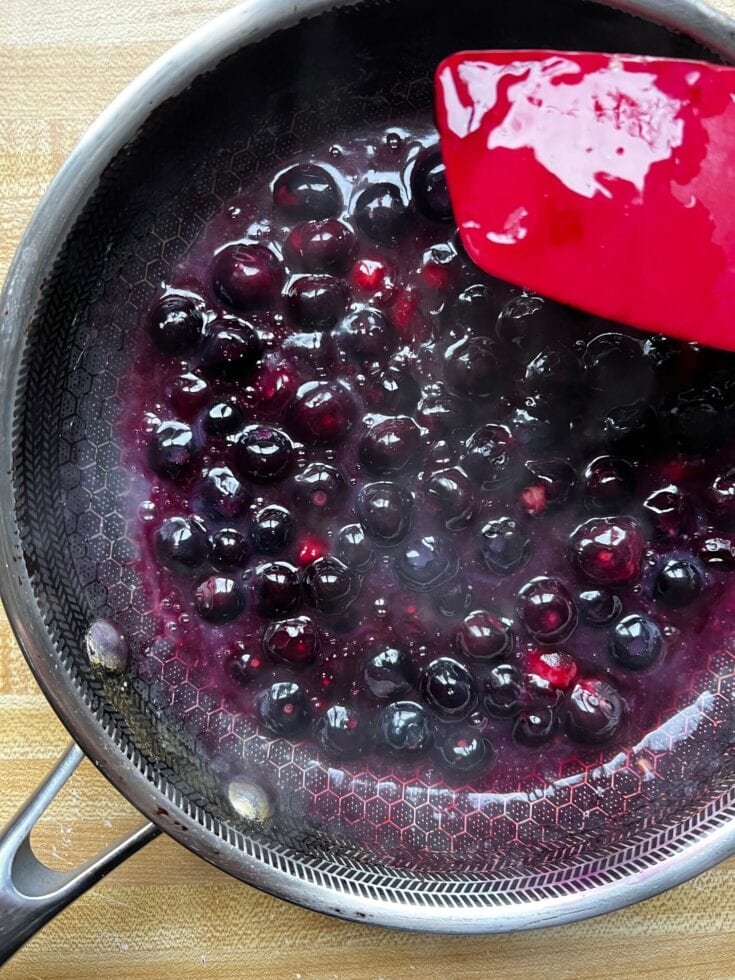 - In a skillet, add the blueberries and add the cornstarch water mixture.