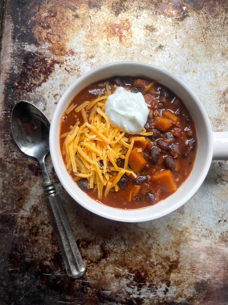 - Heat avocado oil in a large stock pot and bring to medium-high heat. If using beef, add the beef to the skiller. Without removing any fat from the pan, add diced sweet potato and cook, stirring often, about 4 minutes.Add garlic, chili powder, chipotle and salt and cook, stirring constantly, until fragrant, about 30 seconds.