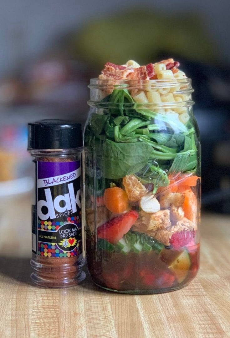 - Layer salad in mason jar. If you don't have a mason jar, store dressing separately.