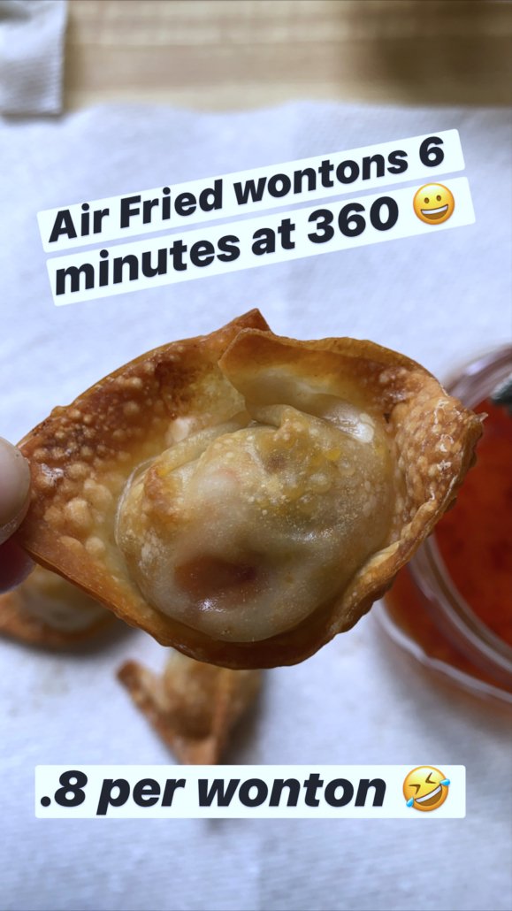 I posted the first picture of the boiled wonton, and the immediate response was “hey Biz, how would you air fry those?” Um, I had no idea! The next day I formed the wontons above (not boiled) and sprayed with avocado oil spray and air fried at 360 for 6 minutes. Crunchy, delicious and tasted like the best appetizer you could have at a restaurant.