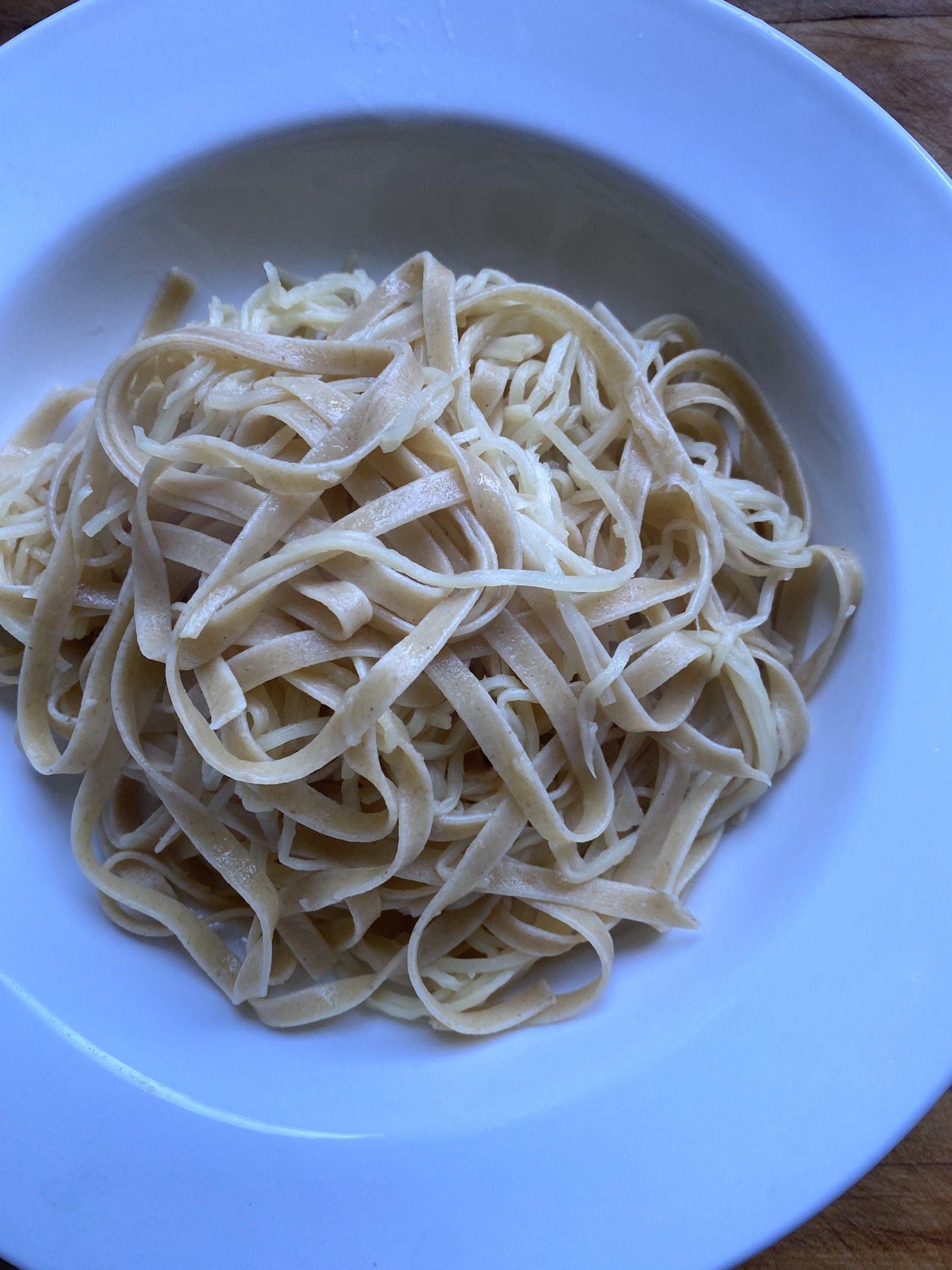 Using whole wheat fettuccine, my pasta was zero points, I used 1/2 cup of my sauce on top, and this is a zero point dinner, which also comes in at 305 calories, thanks to the hearts of palm pasta.