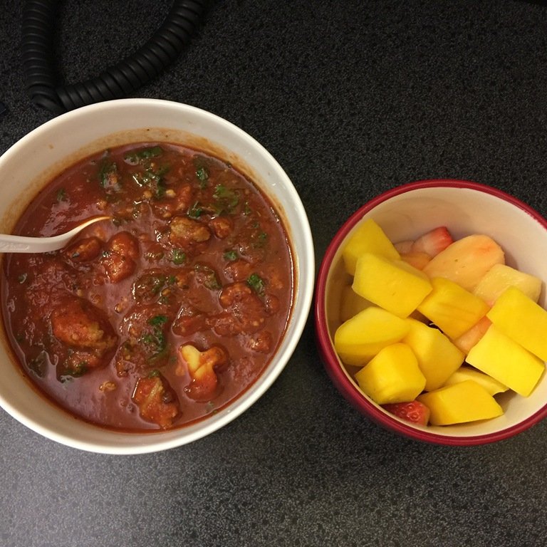 I had just enough time to get back and heat up lasagna soup and fruit for lunch – I didn’t even finish the soup, it got cold before I finished it, so I had two Nature Valley granola bars to go with lunch, so lunch was 14 points.