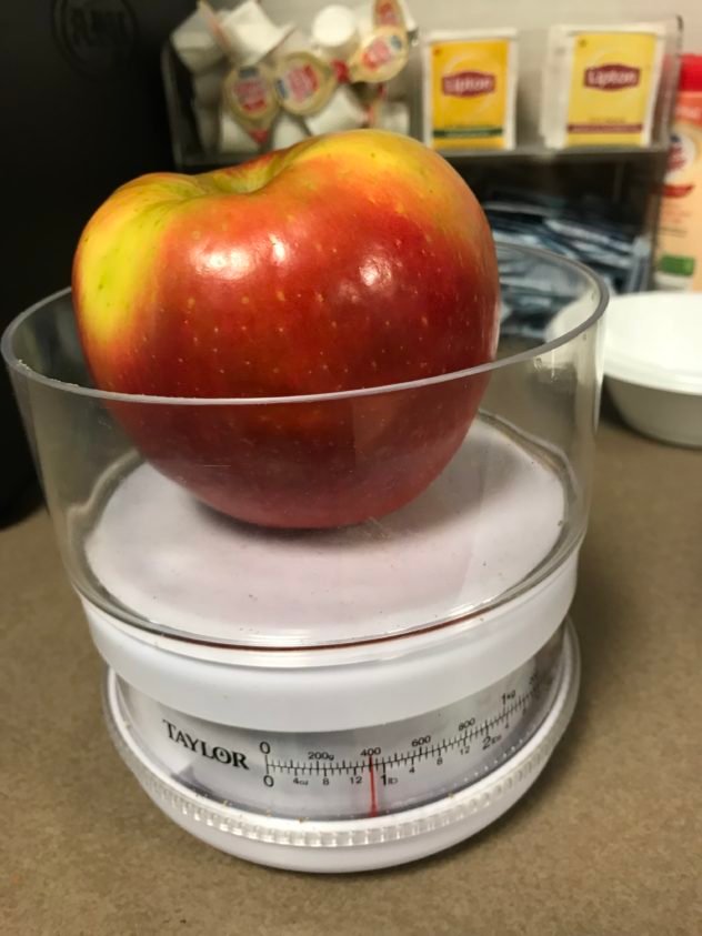 I ate half of that apple as my afternoon snack – I had to weigh it for shits and giggles – nearly 1 pound!