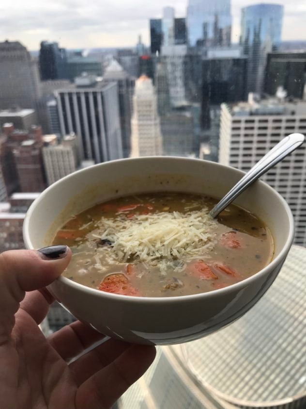 My blood sugar before lunch? 68. Too low to go walking, and it turned out my sister’s son was meeting her so I took a short lunch and heated up my Tuscan Bean Soup. I gave some to one of my co-workers and she couldn’t stop talking about how good this soup was. It’s a keeper!