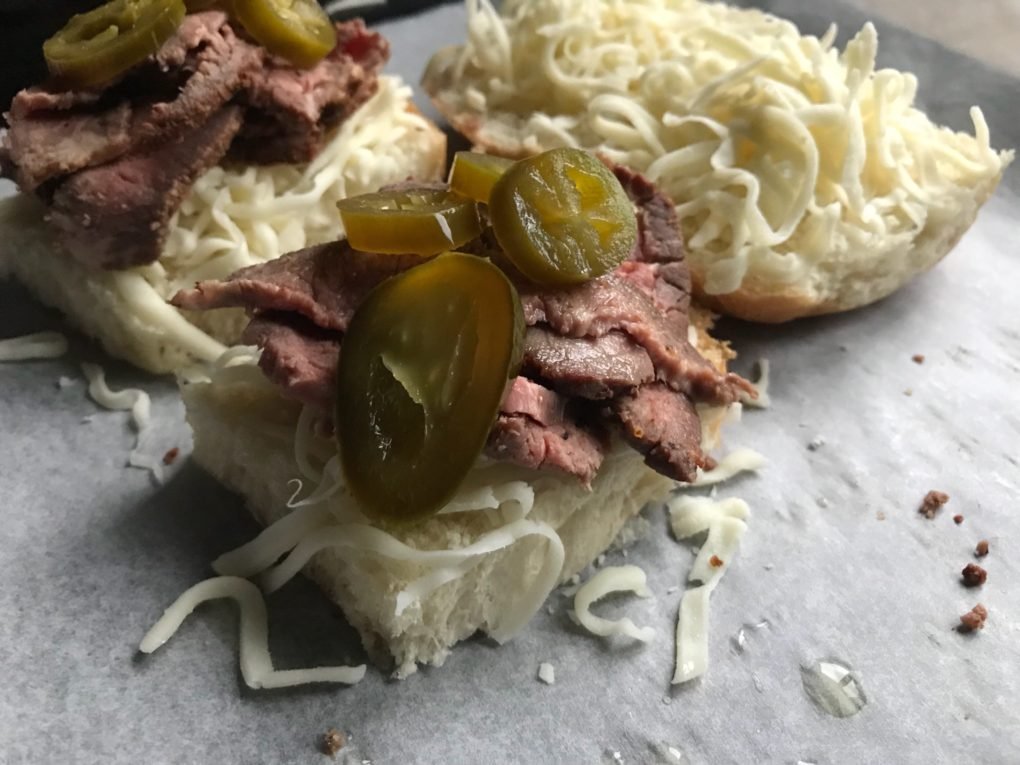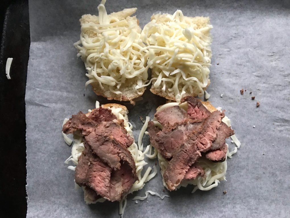 2.5 ounce rolls (for both) (4) two ounces leftover grilled London Broil (2)