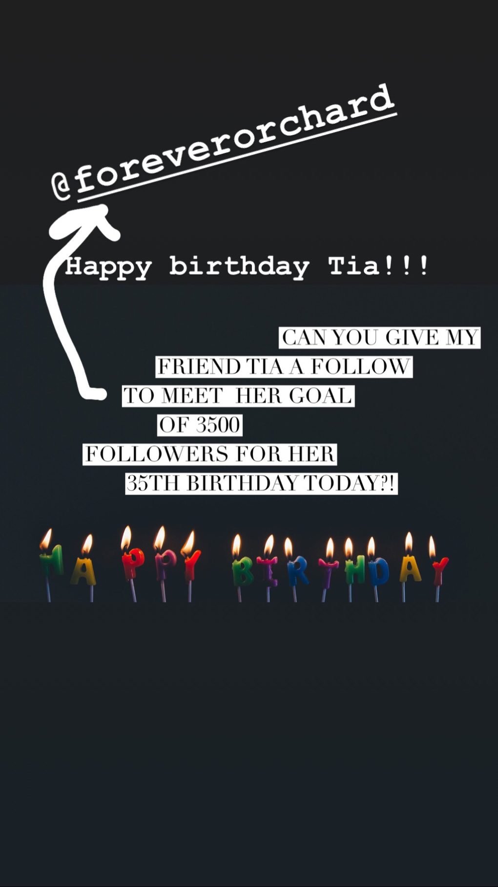 If you are on Instagram, can you give my friend Tia a follow. She’s 35 years young today and trying to reach a goal of 3500 followers by the end of the day – she’s so close!