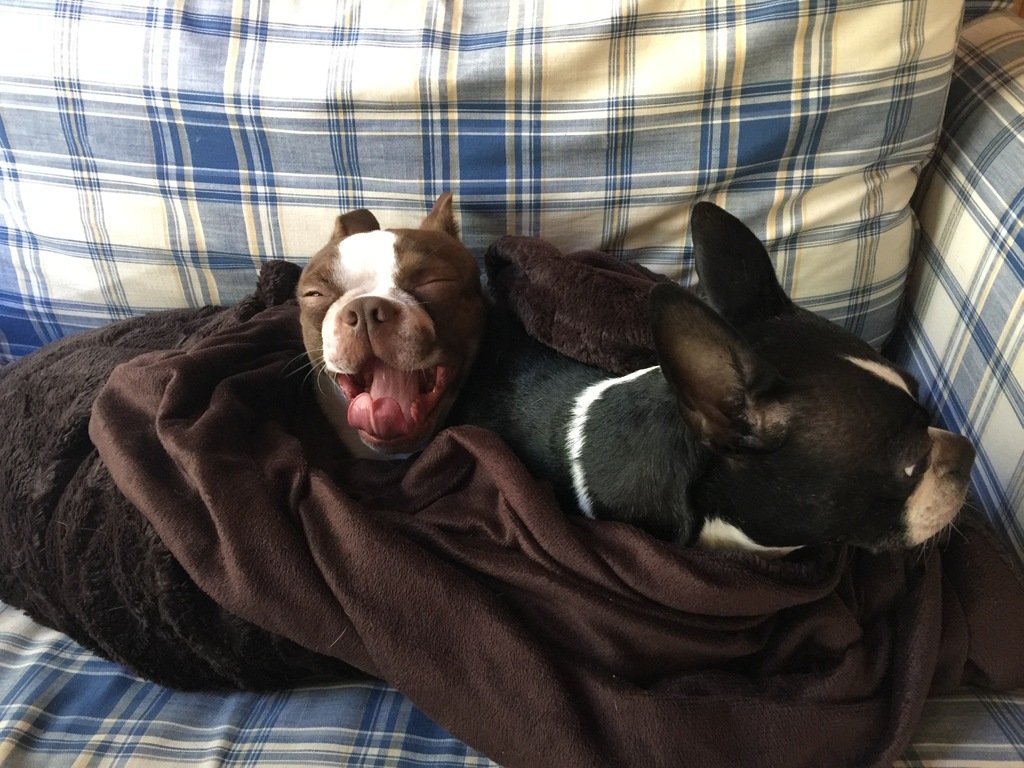I never turned the heat on, so I felt compelled to wrap up the dogs. They stayed like this for a good two hours.