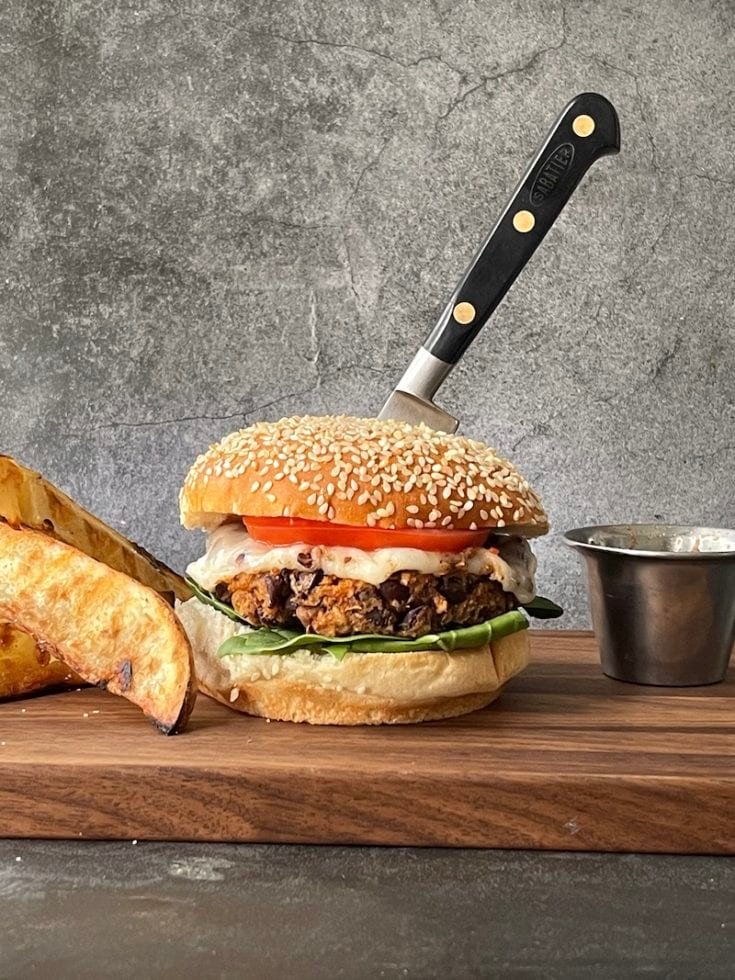 These black bean burgers are a nice change to beef. The secret is freezing the patties before hitting the grill - they will stay together perfectly.