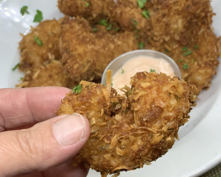 This crispy and light coconut shrimp is perfect alone with a dipping sauce or on top of a salad or over rice and some veggies. This turned out even better than I expected, and is truly best in a deep fryer but can also be done in a pan or air fryer.