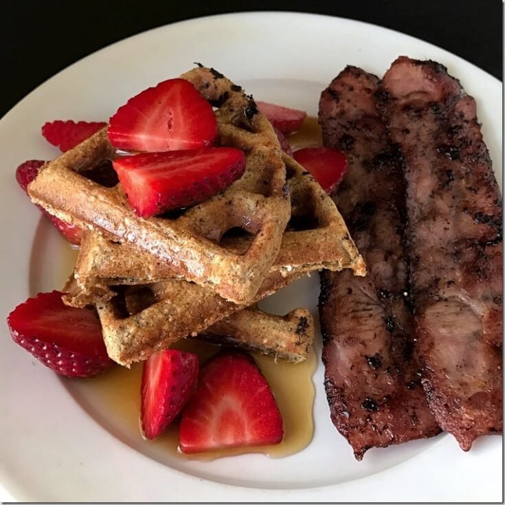 - Heat waffle maker according to manufacturer instructions. I used a 1/3 measure for each waffle, so I got 5 waffles out of this recipe.